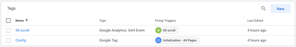 I created a site-wide event called “50-scroll.” This event triggers when someone scrolls at least 50% of the way through a page. The idea is that tracking user scrolling will better capture engagement than user page views.